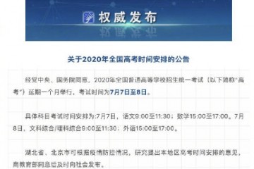 原标题:高考承认延期一个月,你要见证前史了据教育部,经党中央、国务院赞同,2020年全国一般高等学校招生一致考试延期一个月举