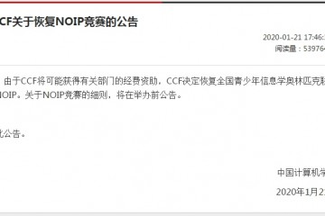 昨日,我国核算机学会(CCF)发布了一条爆炸性布告:因为 CCF 将或许取得有关部门的经费赞助,CCF 决议康复全国青少年信息学奥林