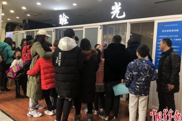 1月15日,家长带着孩子在中国中医科学院眼科医院排队等待验光检查。中青报·中青网记者 张曼玉/摄一名近视患儿遵医嘱在治疗室接