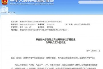 教育部1月15日发布《关于在部分高校展开基础学科招生变革试点工作的定见》,宣告2020年起,原有高校自主招生方法不再运用,改为